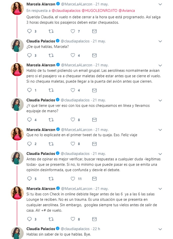 La pelea de Claudia Palacios y Marcela Alarcón en Twitter por un vuelo retrasado