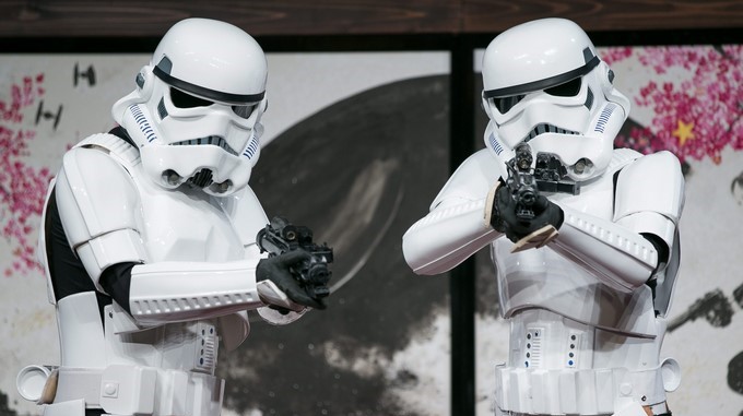 Dos actores caracterizados como Storm Troopers