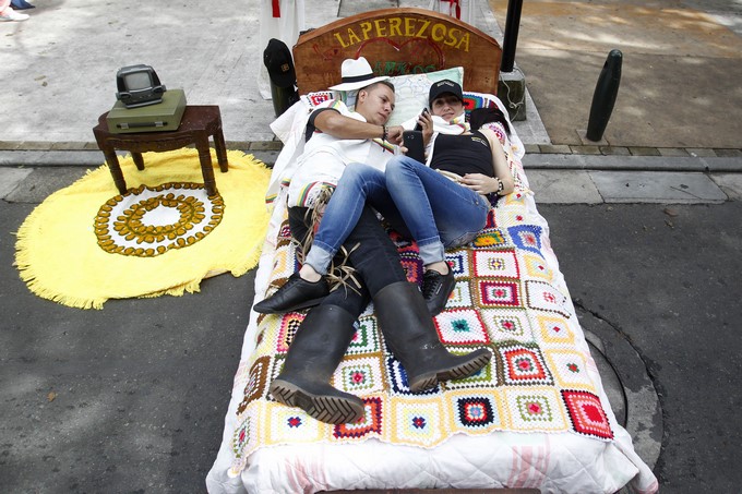 Lo mismo atrajo a Jhonny López, el dueño de una cama bautizada “La Perezosa”, que exhibió junto a una mesa de noche, un pequeño televisor y un tapete, en una especie de habitación improvisada en la calle, donde se alternaron los momentos de reposo y sueño frente a la mirada de los transeúntes.