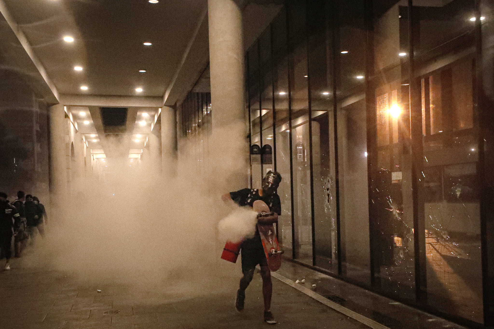 Los infiltrados, en su mayoría con el rostro enmascarado, continuaron con los destrozos e intimidaron a otros manifestantes y a la prensa con palos y piedras, hasta que fueron ahuyentados.