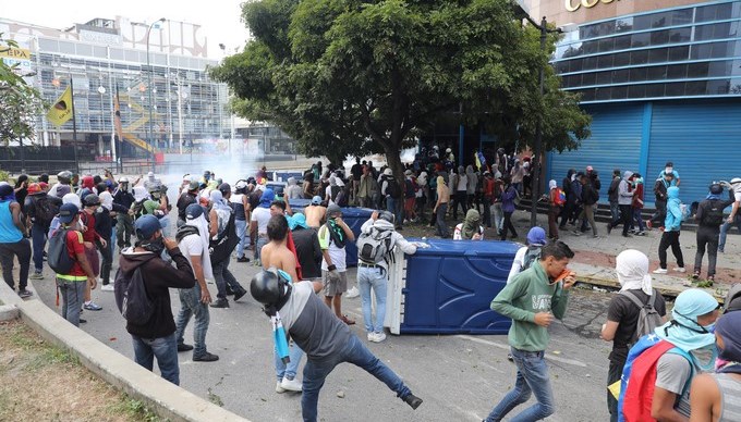 Funcionarios policiales han comenzado a dispersar con gases lacrimógenos a manifestantes opositores en distintos sectores de Caracas, luego de una movilización que acompañó al jefe del Parlamento, el opositor Juan Guaidó, quien hoy se autoproclamó presidente.