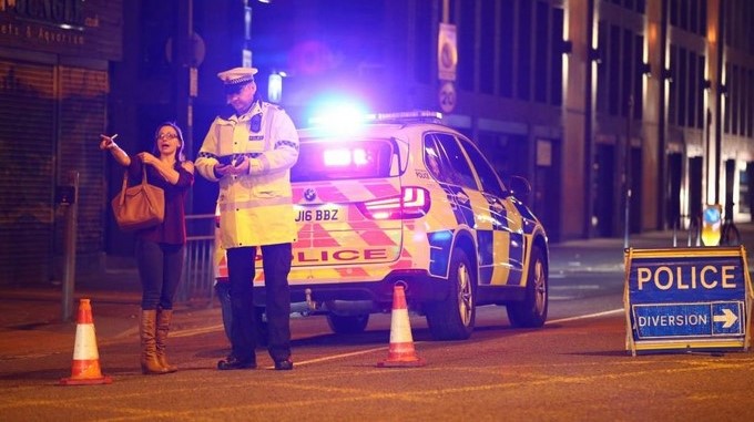 Policía a las afueras del Manchester Stadium. Foto: Twitter