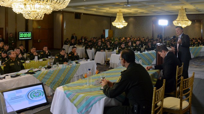 Al término de la reunión que sostuvo con comandantes de la Policía y más de 300 oficiales de la institución, Santos manifestó que se trataron diversos temas, entre ellos la negociación que se adelanta en La Habana.