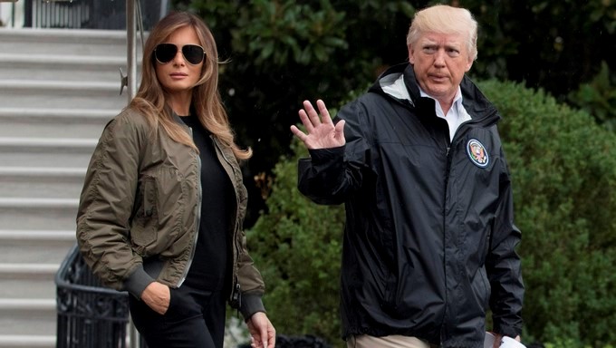 Donald J. Trump (d), y a su esposa, Melania Trump (i), al dirigirse a Texas para evaluar el daño que causó el huracán Harvey. EFE/Archivo