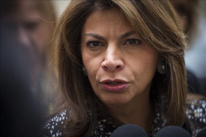 La presidenta de Costa Rica llegó al Vaticano sin su esposo y acompañada por una delegación de 12 personas.