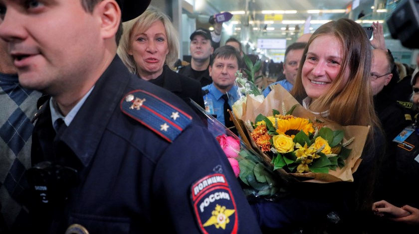 “El reconocimiento parcial de culpabilidad que tuvo que hacer María por las duras condiciones de su reclusión y la amenaza de una condena mayor no elimina el hecho de su absoluta inocencia”, afirmó el ministerio ruso de Exteriores en la red social VKontakte, al comentar su regreso a Rusia.