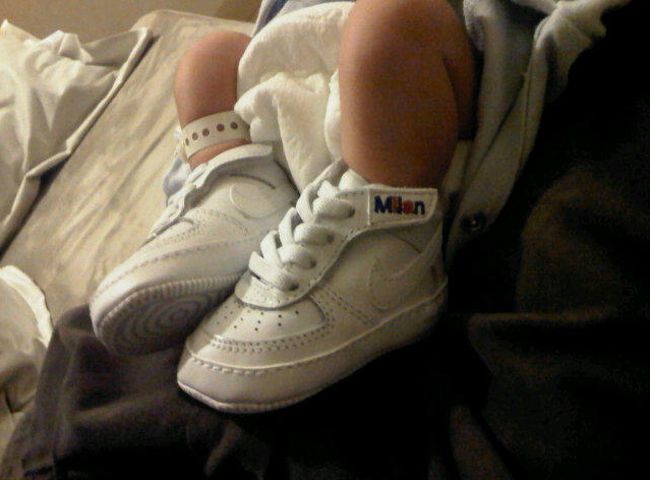 En este caso, Piqué orgulloso de su bebé recién nacido publicó la ansiada primera foto de su hijo: los pies pero con zapatillas deportivas y de marca y para completar bordados con el nombre “Milan”