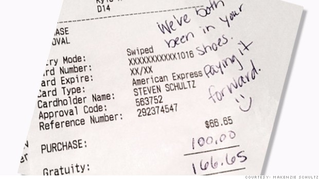 Al final, dejaron una propina de 100 dólares para el camarero en una cuenta de 66,65 dólares. Mackenzie escribió en la cuenta: “Los dos hemos estado en tu piel. Haz lo mismo”.