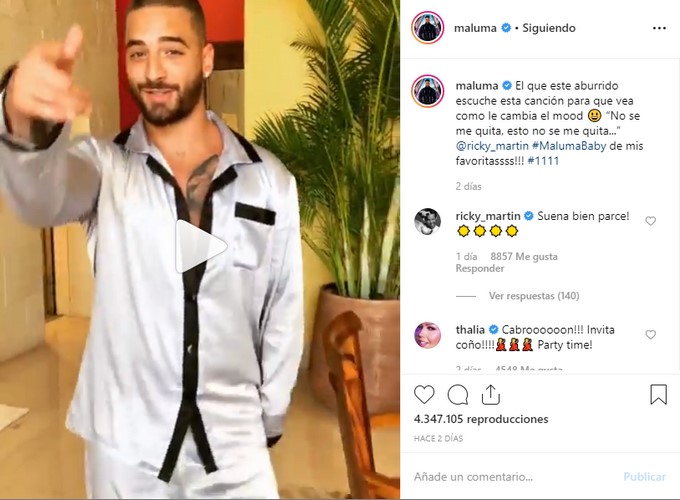 El boricua y muchos de sus seguidores le comentaron la publicación, resaltando la belleza del colombiano y la canción que suena de fondo. “Suena bien parce! ☀️☀️☀️☀️”, escribió Ricky. Sin embargo, lo que llamó la atención fue el comentario que le dejó la diva mexicana Thalía en el post, quien le hizo una propuesta indecente, que más bien suena a reclamo de amigos, al intérprete de “HP”.