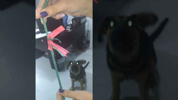 Al frente de un establecimiento comercial en San Juan con la avenida Oriental de Medellín, un desconocido abandonó a esta mascota. Esta mascota tiene collar con moño y uñas maquilladas, por favor si la reconoce comuníquese lo más pronto posible al 30438678.