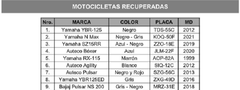 Los capturados y las motocicletas recuperadas quedaron a disposición de las autoridades competentes.