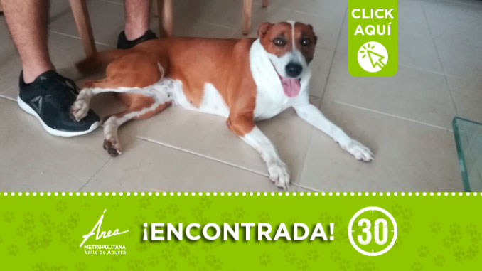 Esta perrita fue encontrada hace pocas horas deambulando por sector cercano al Estadio Atanasio Girardot de Medellín. Si usted lo reconoce o sabe del paradero de sus dueños, por favor llame YA al 3003250137