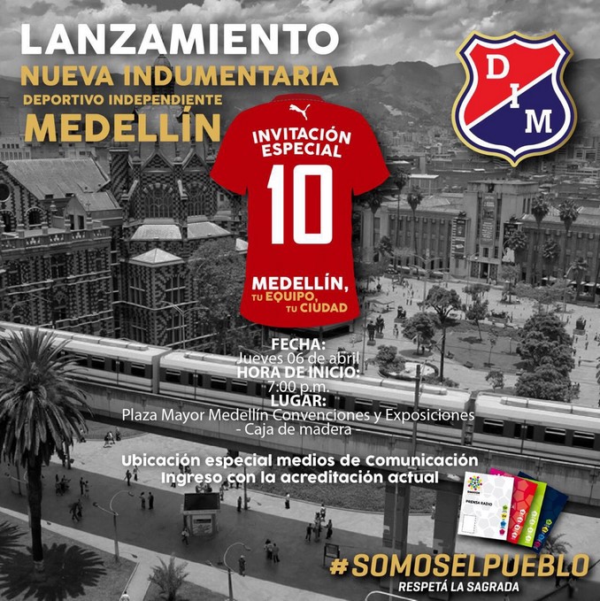 Minuto30.com- Independiente Medellín presentará este jueves en sociedad su nueva indumentaria deportiva, entre la que causa mayor expectativa ‘La sagrada’, como denominan los hinchas la camiseta del equipo.