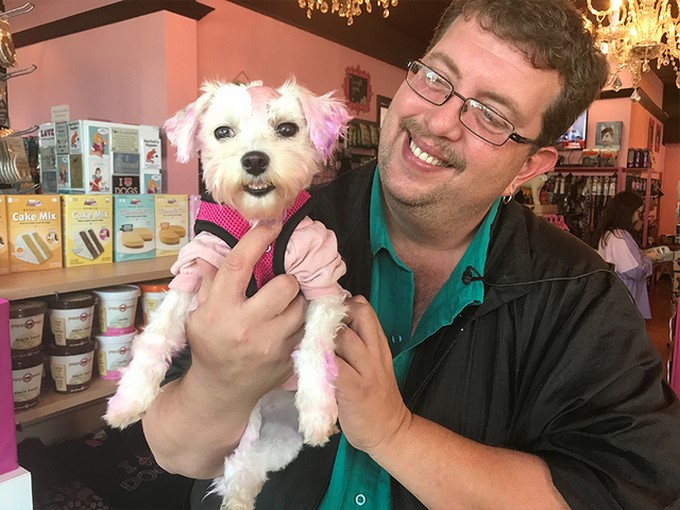 La perrita en las siguientes imágenes por poco pierde la vida luego de que a sus dueños se les ocurriera tinturarle el pelo completamente de púrpura.