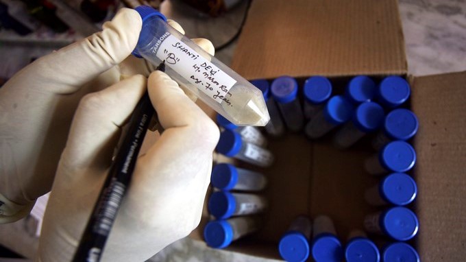 Un trabajador sanitario recoge una muestra de un paciente enfermo de tuberculosis