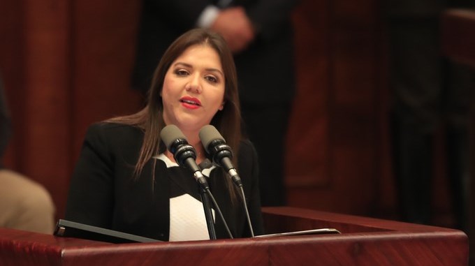 QUI20. QUITO (ECUADOR) 06/01/2018.- María Alejandra Vicuña jura en el cargo como la nueva vicepresidenta del país, hoy, sábado 6 de enero del 2017, al ser designada por el foro legislativo en reemplazo a Jorge Glas, en prisión por estar vinculado a un caso de asociación ilícita relacionada con la trama de corrupción de la brasileña Odebrecht, en el Parlamento en Quito (Ecuador). EFE/José Jácome