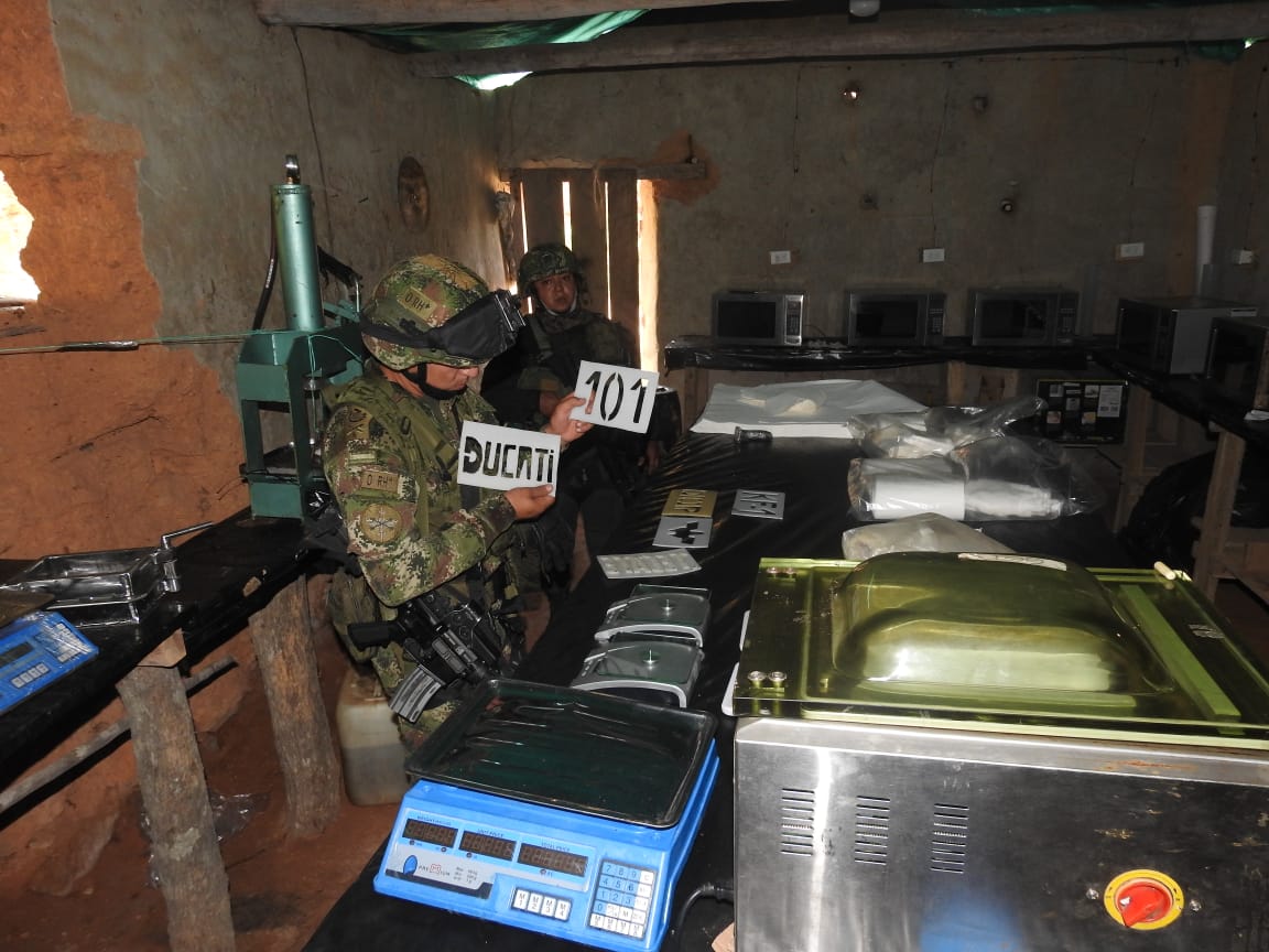 En una operación militar, tropas del Ejército lograron ubicar y destruir un complejo para la producción de clorhidrato de coca, al parecer del Grupo Armado Organizado Residual (GAOr) – E33 y el GAO-ELN, avaluado en más de 10 mil millones de pesos.