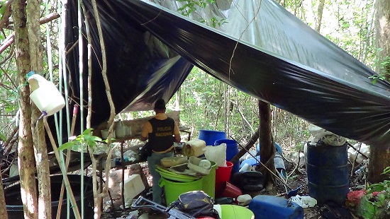 En la zona, fueron destruidos de manera controlada 50 galones de Acetona, 50 kilogramos de soda caustica, un horno microondas, y 360 tanques de almacenamiento.