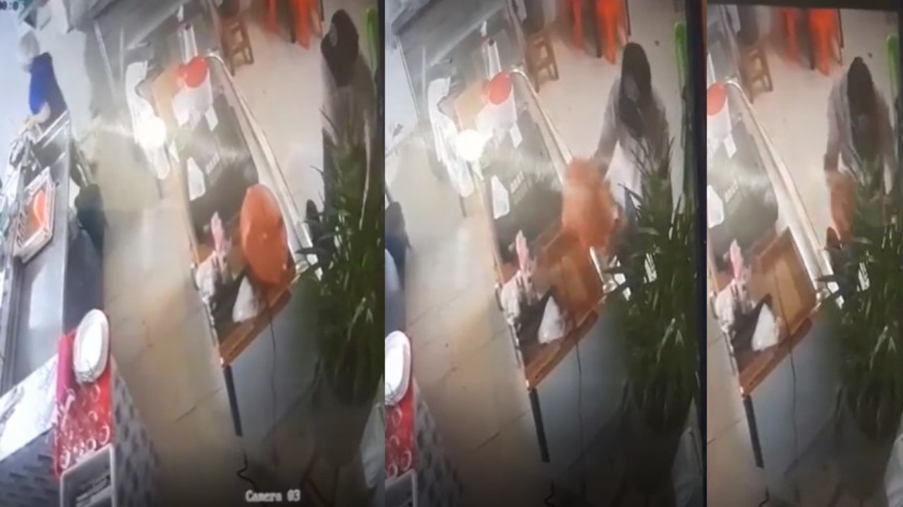 En video de cámara de seguridad quedó el sujeto que entró pidiendo un desayuno a una restaurante cerca del centro de Medellín, el hombre pidió la comida pero también se llevó el ahorro de los trabajadores.