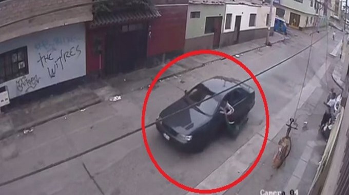 En el distrito de San Martín de Porres, Perú, quedó registrado el momento en que una joven quedó enganchada en la puerta del vehículo, tras querer evitar el robo de su celular.