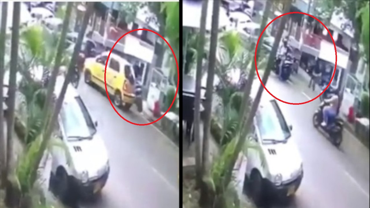 En video quedó el momento en el que la víctima se bajó de un taxi que habría tomado a la salida de un centro comercial, pero al parecer los dos ladrones estaban en la ‘jugada’ para atacarlo cuando iba de camino a su casa en Boyacá las Brisas, Medellín.