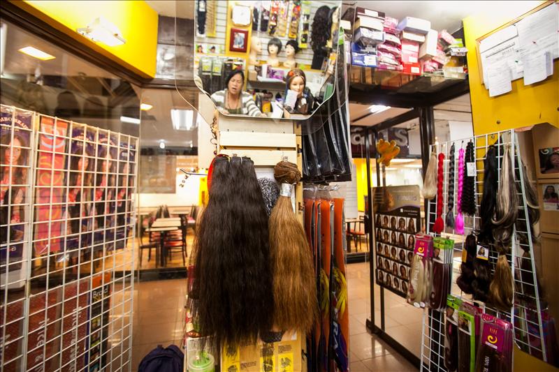 Vista general de una tienda de extensiones de cabello y pelucas hoy, martes 13 de agosto de 2013, ubicada en el centro de Caracas (Venezuela). EFE