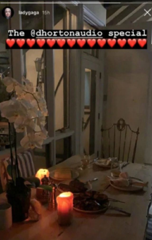 Esta vez Gaga demostró su enamoramiento a través de sus historias de Instagram, en las que publicó una imagen de una cena romántica que según la etiqueta la preparó su nuevo novio: Dan Horton, con quien ya se había visto en julio en un restaurante de Los Ángeles.