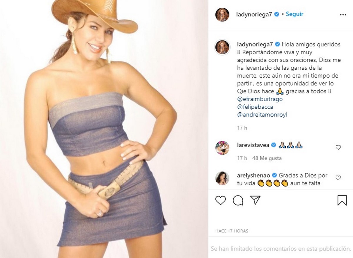 “Hola amigos queridos. Reportándome viva y muy agradecida con sus oraciones, Dios me ha levantado de las garras de la muerte, este aún no era mi tiempo de partir , es una oportunidad de ver lo Qque Dios hace,, gracias a todos”, escribió Lady Noriega en su último post de Instagram.