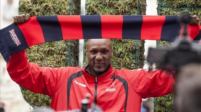 • Lamar Odom llega a Vitoria y posa como nuevo jugador del Laboral Kutxa