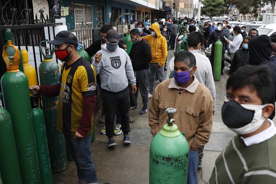 Con 179.000 casos acumulados de COVID-19, Perú ha entrado en una nueva fase de pandemia: la desesperada carrera por buscar oxígeno, elemento esencial para los enfermos graves que lleva a los peruanos a hacer colas de cientos de personas durante la madrugada y a pagar hasta diez veces su precio normal.