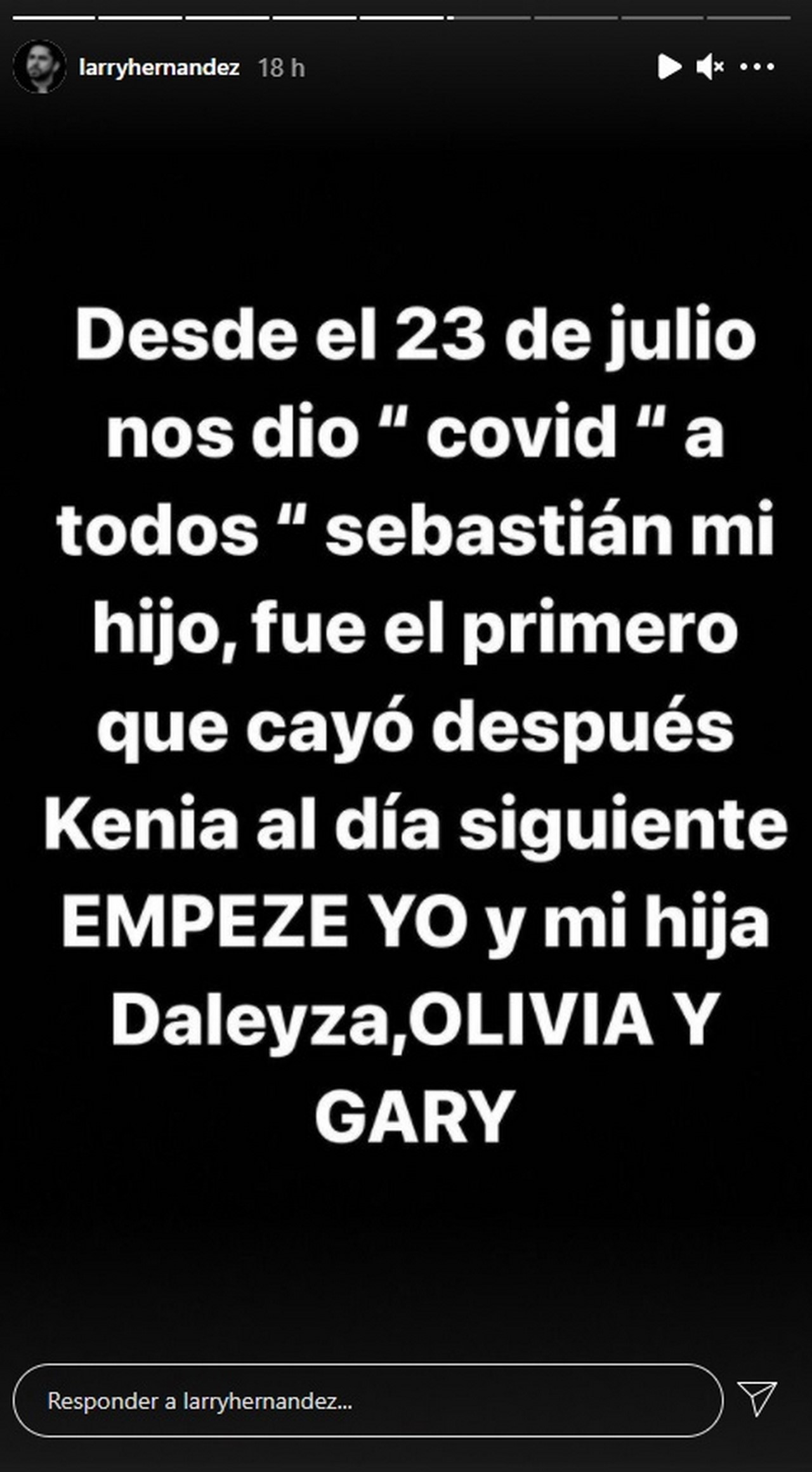 El artista aseguró que el primero en contagiarse fue su hijo Sebastián, al que le siguió su esposa Kenia y posteriormente sus hijas Daleyza y Olivia, además de la mujer que trabaja en su hogar.
