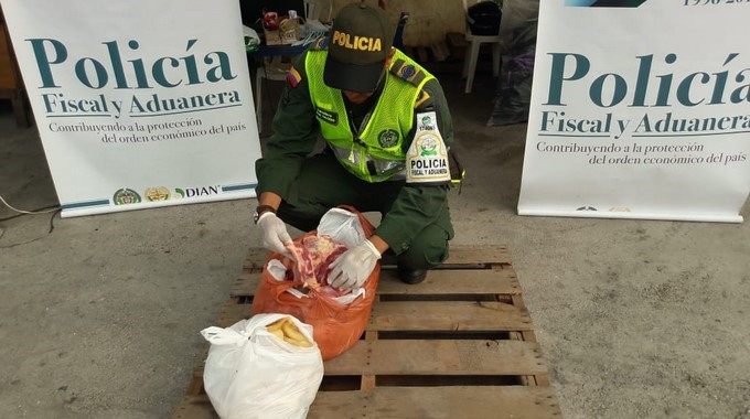 Durante los controles aduaneros lograron la incautación de 100 kilogramos de carne en canal, por no cumplir con las condiciones fitosanitarias y posible afectación a la salud pública de los consumidores, la cual era transportada en el platón de una camioneta con otros elementos contaminantes en lo que se encuentra la caja de herramientas y llantas de repuestos.