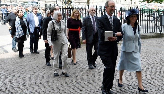 A la ceremonia asistieron, entre otros, los tres hijos del astrofísico, Lucy, Tim y Robert; su primera mujer Jane Wilde; el premio nobel de Física Kip Thorne; el presidente de la Real Sociedad de Londres para el Avance de la Ciencia Natural, Martin Rees, y el músico Nile Rodgers.