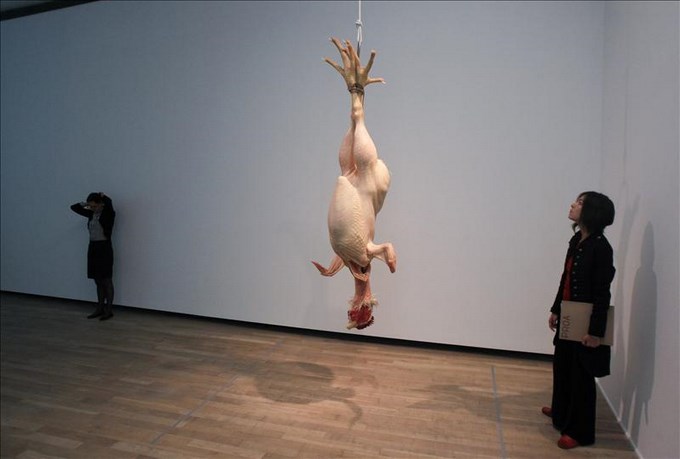 “A la deriva”, “Mujer con ramas”, que evoca el mundo de las brujas y las leyendas, “Juventud”, “Hombre en el bote” y “Naturaleza muerta”, en la que muestra un enorme pollo muerto suspendido en el aire, completan la exposición.