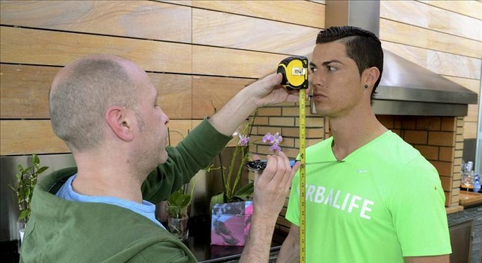 Fotografía facilitada por el Museo de Cera de la capital del delantero del Real Madrid Cristiano Ronaldo, durante la toma de medidas antropométricas llevada a cabo por el equipo artístico de la institución museística, como paso previo para la realización de su escultura, que estará lista a principios del próximo otoño. EFE