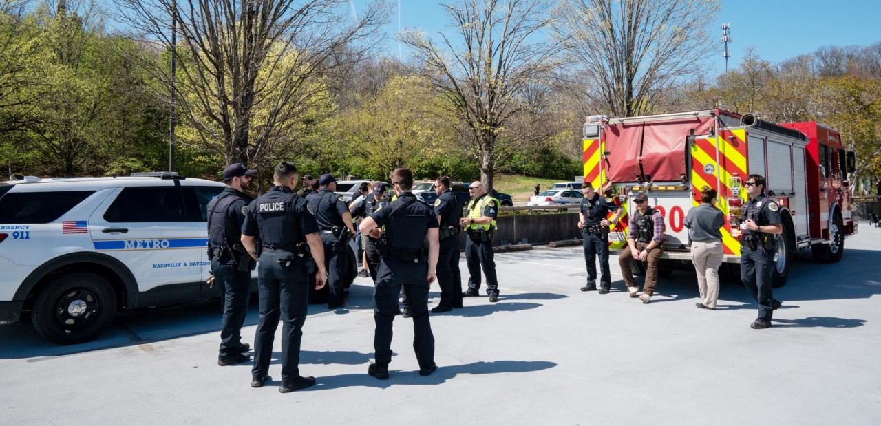 Departamento de Policía de Metro Nashville y funcionarios en la escena fuera de la Escuela Covenant, Iglesia Presbiteriana de Covenant tras un tiroteo en Nashville, Tennessee, EE. UU., este 27 de marzo de 2023. EFE/EPA/Hamilton Matthew Masters