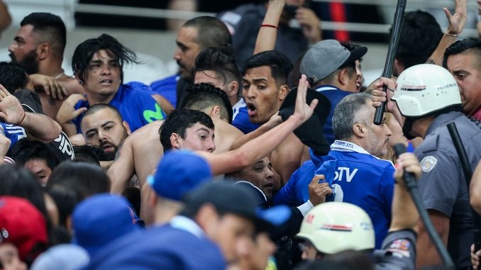 Chile no ha sido ajeno a estos episodios. Este 5 de abril seguidores del Universidad de Chile les lanzaron butacas y se enfrentaron en Sao Paulo con policías brasileños en el partido de la Copa Sudamericana entre el equipo de sus amores y el Corinthians.