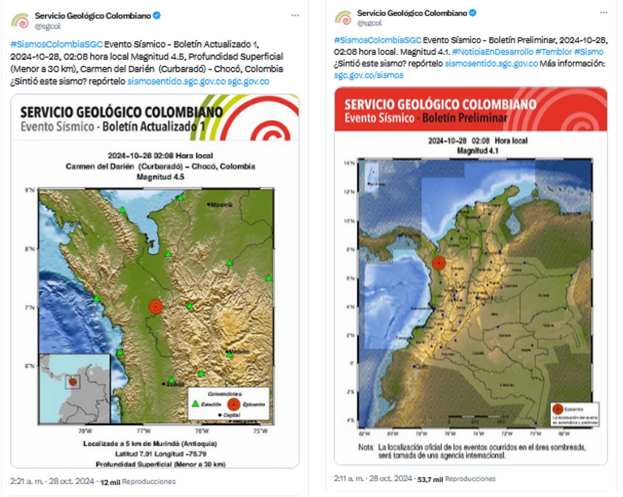 Minuto30.com .- Un sismo de intensidad media alta se registró la madrugada de este lunes 28 de octubre en territorio colombiano y a más de uno despertó.