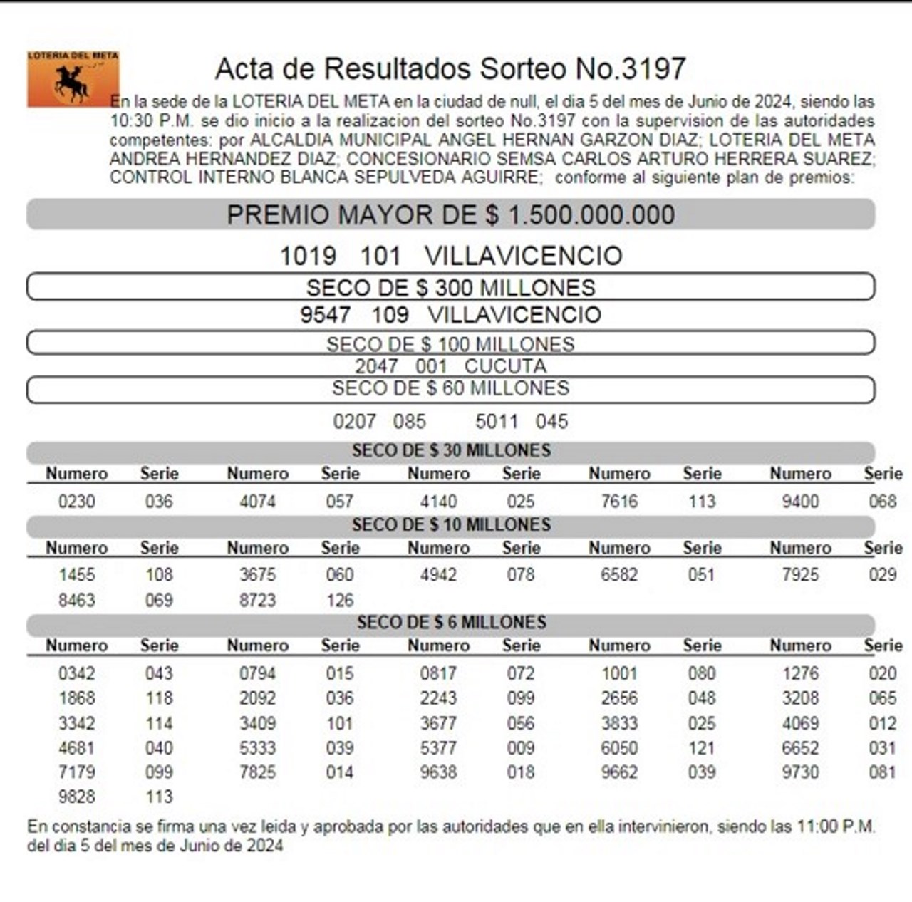 Te presentamos los números ganadores del último sorteo por la Lotería del Meta . ¿Estarás entre los afortunados? Descúbrelo ahora y sigue participando para aumentar tus posibilidades de ganar. Consulta todos los detalles sobre los resultados y mantente al tanto de la Lotería del Meta ¡No te lo pierdas!