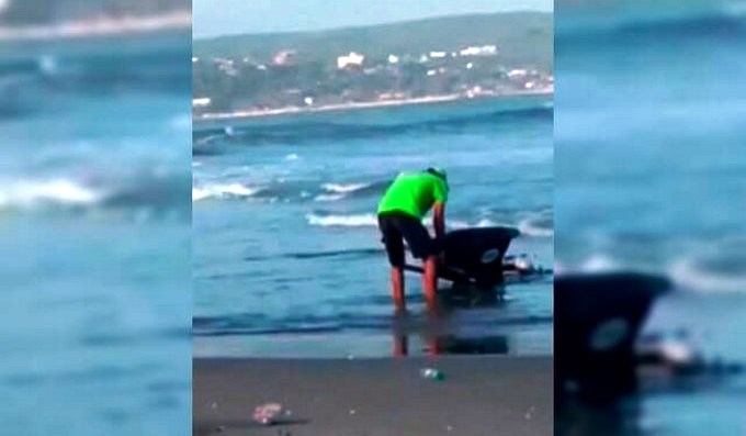 La escena fue captada en una playa de Puerto Colombia, Atlántico, donde un hombre echaba una carretada de basura al mar.
