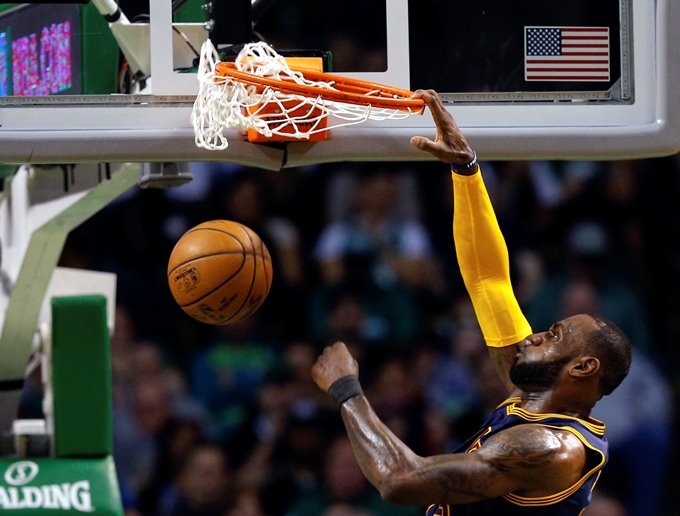 El alero LeBron James tuvo 36 puntos, 10 rebotes y seis asistencias en el triunfo de los Cavaliers de Cleveland, que como visitantes vencieron por 91-114 a los Celtics de Boston y se afianzan líderes en solitario de la Conferencia Este.