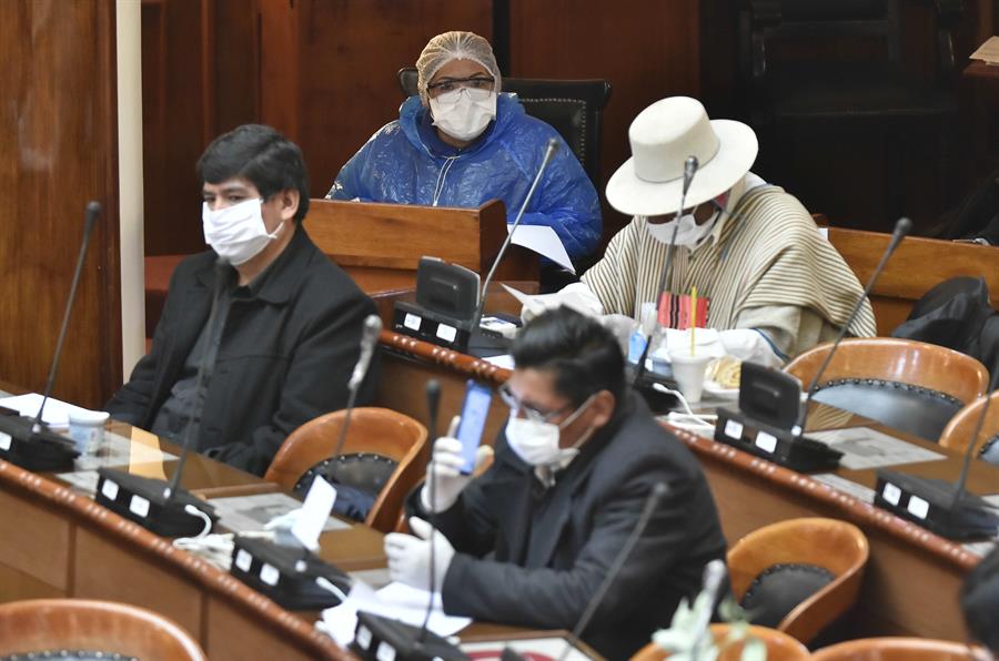 La Comisión de Política Internacional de la Cámara de Diputados, con mayoría de parlamentarios del Movimiento Al Socialismo (MAS) de Morales, aprobó esta declaración ante la situación de exministros y otras exautoridades que se encuentran en la residencia de la Embajada mexicana.