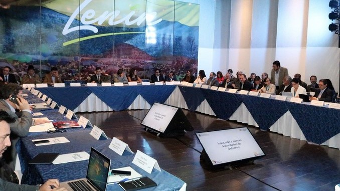 Con ese gabinete, Moreno “continuará el proceso de transformación política y edificación de un país más justo, solidario e incluyente, a través de la creación de una red de protección social integral, la erradicación de la pobreza, la lucha contra la corrupción y el impulso de la economía”, según su equipo de prensa.
