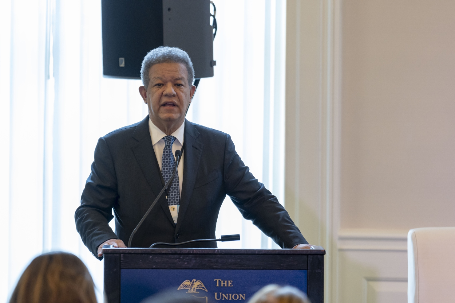 Leonel Fernández, presidente de la Fundación Global por la Democracia y el Desarrollo (FUNGLODE), organizador del foro junto con la organización promotora de la democracia Internacional IDEA, delineó un mundo dividido en dos bloques: el asiático y el transatlántico, con la OTAN como nexo.