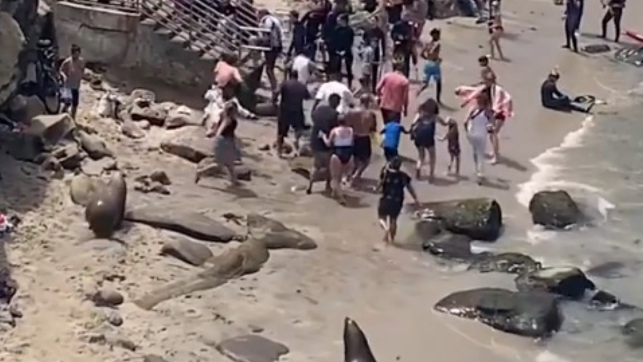 La grabación muestra cómo los turistas se acercan a los leones marinos que descansan cerca de las rocas, pero luego de unos segundos comienzan a correr hacia las personas. Después de algunos segundos, abren paso hacia el agua, donde los nadadores se ven obligados a salir.
