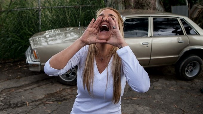 La esposa del dirigente político de oposición Leopoldo Lopez, Lilian Tintori, le grita a Lopez