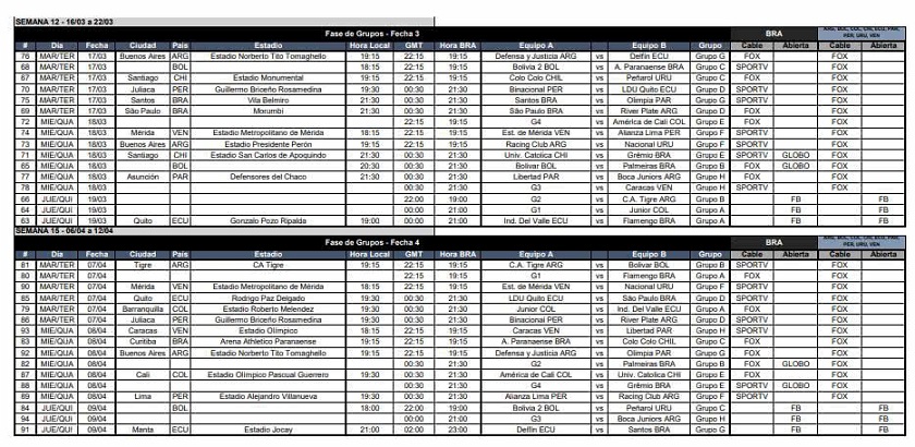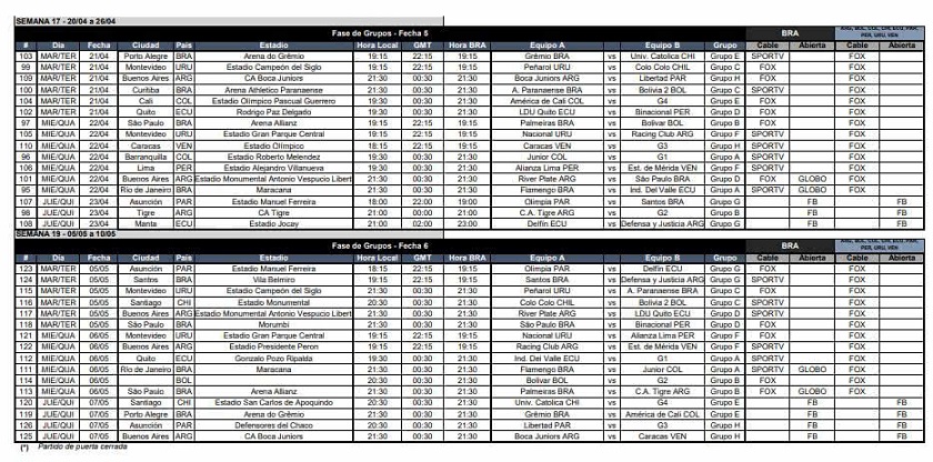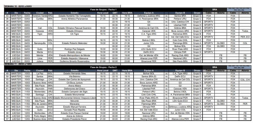 Se conoció este jueves el calendario con horas de los encuentros de la Conmebol Libertadores de 2020.