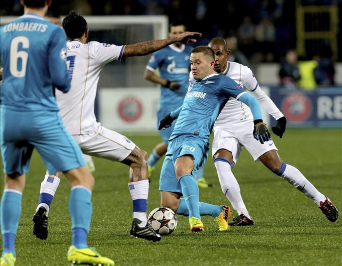 Incidencias: partido correspondiente a la cuarta jornada del grupo G de la Liga de Campeones disputado en el estadio Petrovski, de San Petersburgo. Moscú, 6 nov (EFE)
