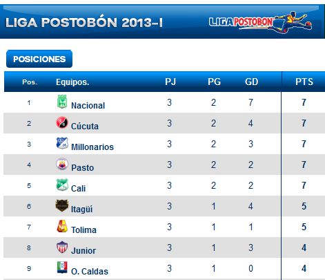Nacional lidera la tabla gracias a la diferencia de goles obtenida por su contundente delantera que ha obtenido 9 tantos a favor, una defensa envidiable que solo ha permitido dos goles en contra para una diferencia de 7.