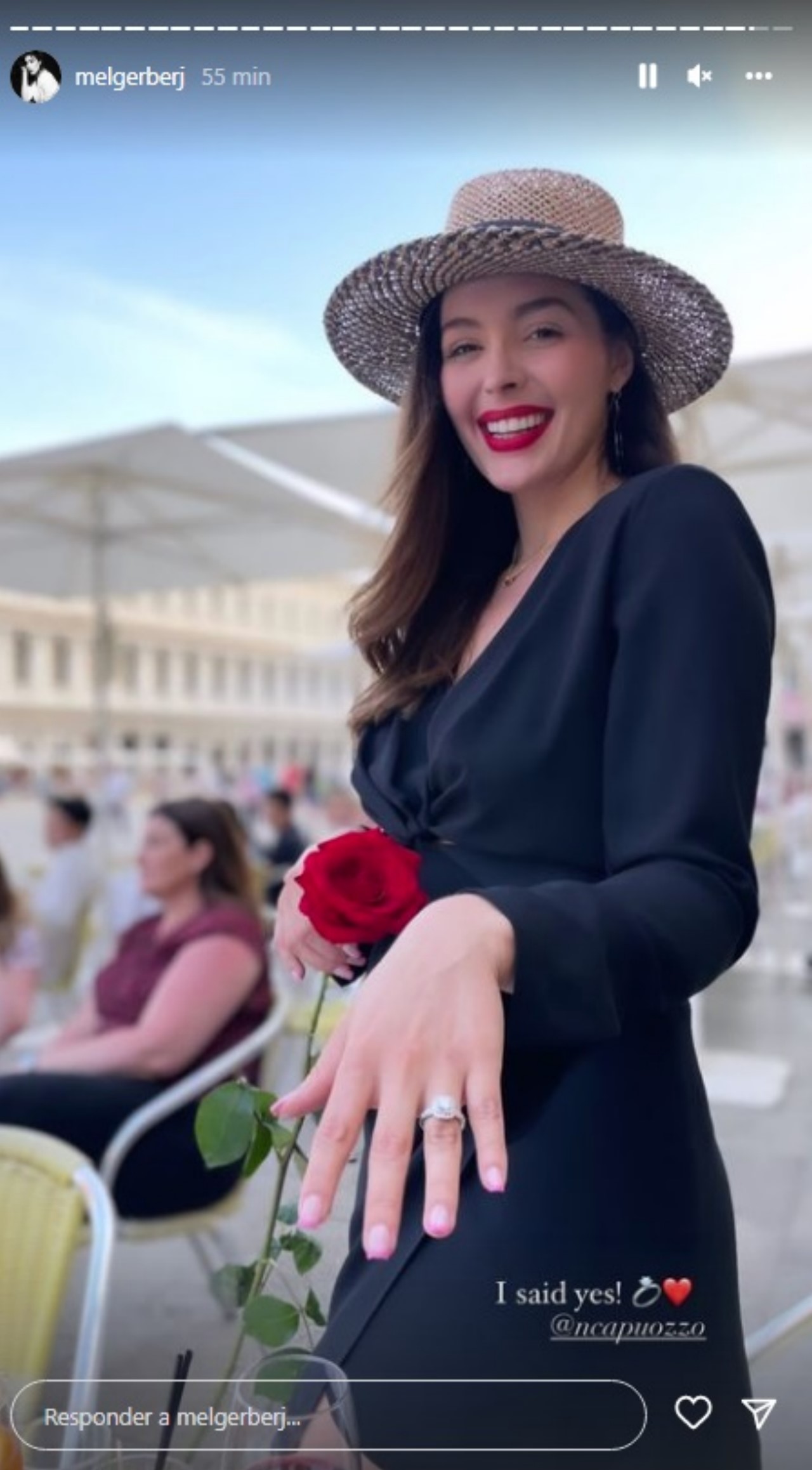 En medio de música en vivo el empresario le entregó una rosa y se puso de rodillas para pedirle matrimonio, Melanie Gerber le dijo que sí.